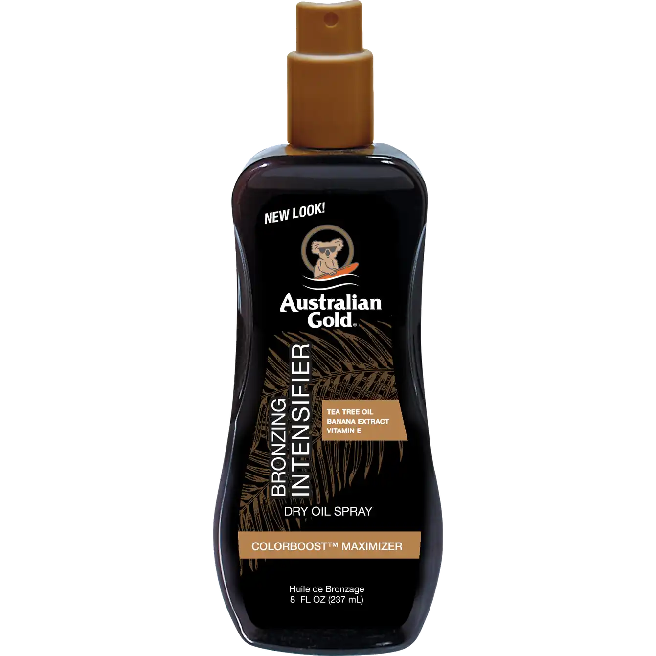 Unik “tør olie”, da denne let-spray-formel ikke klæber til huden og absorberes hurtigt. Designet specielt til brug udendørs i solen. Indeholder ikke solbeskyttelsesfaktor, derfor kun til erfarne garvere. Colorboost Tan Maximize formel, gulerodsfrøolie, bananekstrakter, annatto og australsk tetræolie kombineres for at skabe en øjeblikkelig, dyb, naturlig solbrun. Aloe vera, E-vitamin, tidsel og Solsikkeolie beskytter og fugter huden og hjælper med at bekæmpe fine linjer og rynker. Sprayflasker 237 ml.