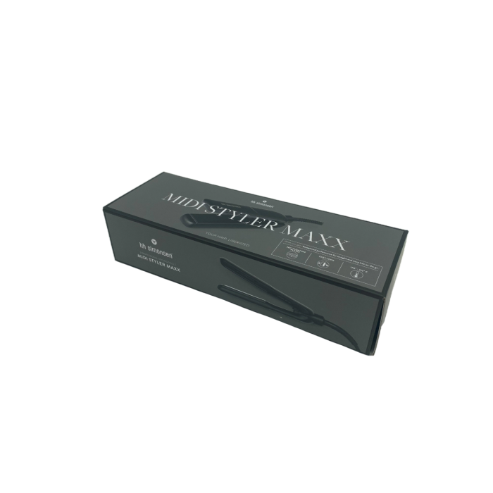 Midi Styler Maxx fra HH Simonsen er det ideelle glattejern for dig, der ønsker en effektiv stylingoplevelse. Denne styler er designet til at opvarme hurtigt, så du sparer tid i din daglige skønhedsrutine. Med tre justerbare varmeniveauer kan du tilpasse varmen til netop dit hårs behov, hvilket sikrer optimal styling uden at skade håret. Midi Styler Maxx giver en jævn varmefordeling fra rod til spids, hvilket hjælper med at opnå et glat og skinnende resultat hver gang. Den indbyggede sikkerhedsfunktion sørger for, at styleren automatisk slukker efter en time, hvis du skulle glemme det. Den kompakte og praktiske størrelse gør den perfekt til at tage med på farten, så du altid kan have et velplejet look, uanset hvor du befinder dig. Med en 3 meter lang ledning får du desuden maksimal bevægelsesfrihed under stylingen. Midi Styler Maxx fra HH Simonsen er en pålidelig partner i din daglige hårpleje.